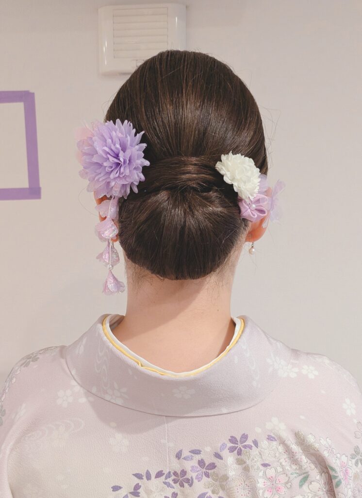 卒園式 訪問着着付けとヘアセット 出張着付けヘアセット 2026.04.09 卒園式ご出席の訪問着着付けとヘアセットとさせていただきました。淡い紫色のお着物がとーってもお似合でした!ヘアスタイルはタイトシニヨンですっきりと。髪飾りも着物のお色とリンクしてすてきですね☆彡ありがとうございました!!!