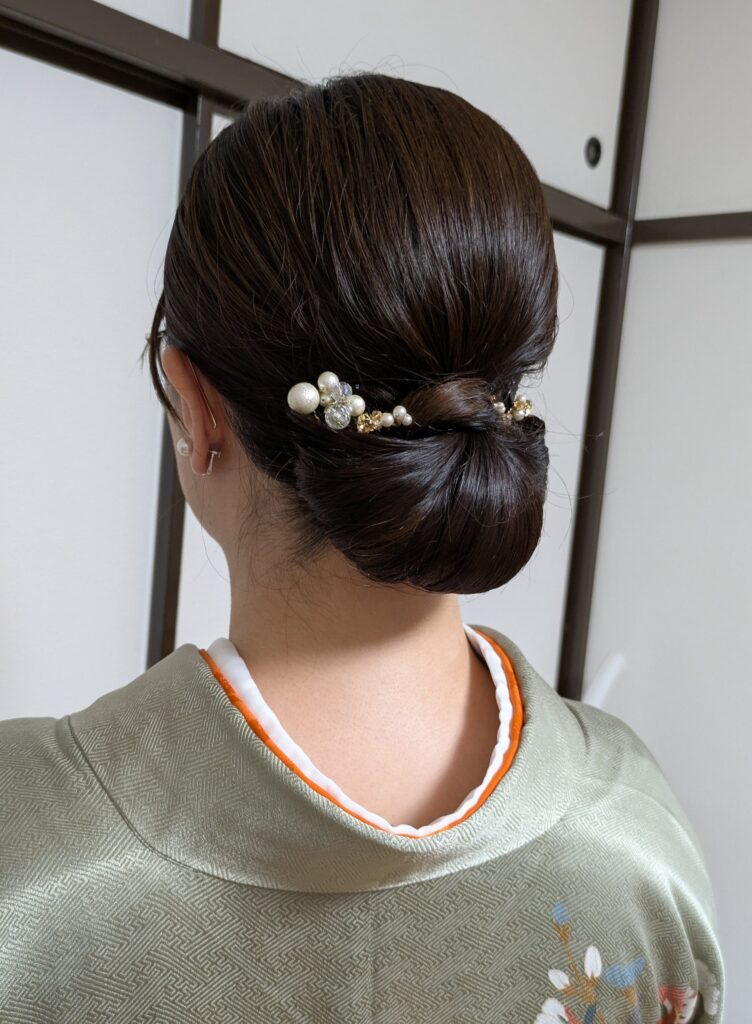結婚式列席の訪問着着付けとヘアセット 出張着付けヘアセット 2026.02.18 ご友人の結婚式列席の訪問着着付けとヘアセットをさせていただきました。お着物、雰囲気にぴったりでとってもお似合でした❣ヘアスタイルはタイトシニヨンですっきりと☆彡ありはとうございました!!! 東京 足立区・北千住 出張着付けヘアセットおしゃれ着物レンタル きもの ぺこら舎